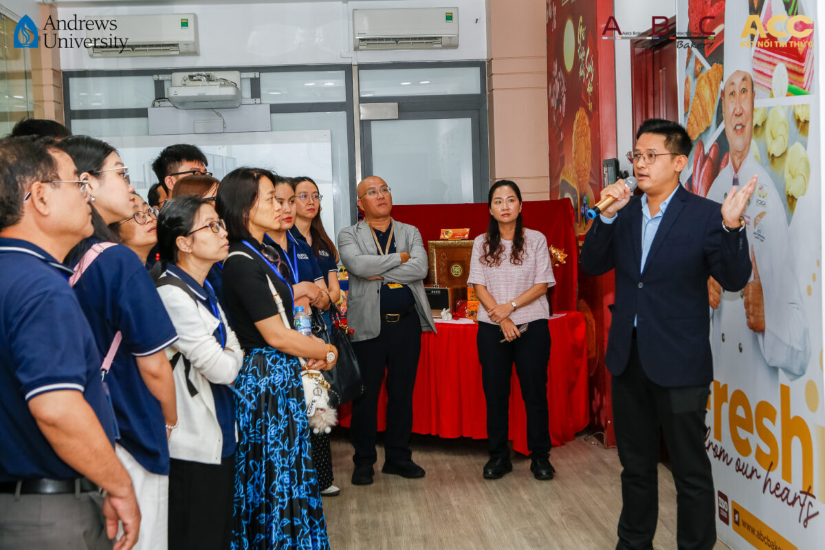 Học viên MBA Andrews Vietnam cũng đã có cơ hội tham quan Showroom & Signature Bakery của doanh nghiệp – nơi hội tụ tinh hoa hơn 30 năm phát triển của thương hiệu bánh kẹo hàng đầu Việt Nam với một không gian trưng bày đa dạng sản phẩm cho đến bộ sưu tập bánh Trung Thu 2025 với triết lý “Fresh From Our Hearts”. Mỗi sản phẩm không chỉ là hương vị, mà còn là câu chuyện văn hoá và sáng tạo được gửi gắm từ người thợ làm bánh.
